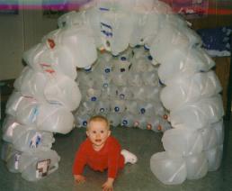 Photo of a milk jug igloo constructed by Britt/PA