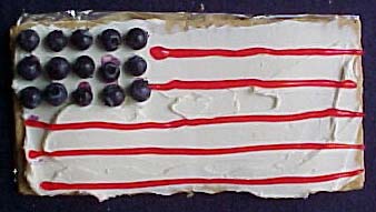 - Section off a rectangle in the upper left corner and place blueberries. (The white showing through are the stars)