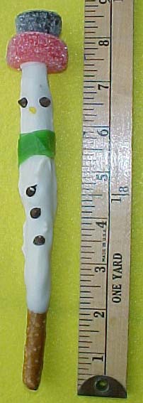 Dip large (about 8 inch) pretzel stick into the melted white chocolate and spread it over about two thirds of the pretzel stick.