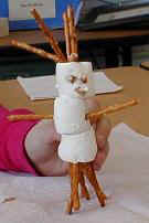 3 large marshmallows several very thin pretzels sticks...