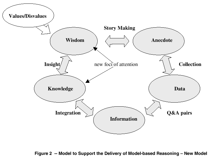 Wisdom is the ability to see and extract the stories woven into the Tapestry of Knowledge. So from Wisdom we get the Art of Story Making. The ancients crafted Myths, which were the prototypical stories of their cultures. A Story is an Anecdotal Model drawn from the culture.