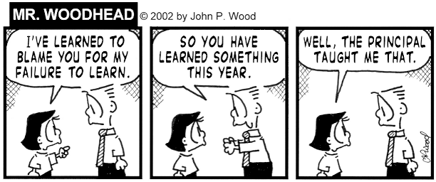 In every class, there will be materials left on at least one desk, and the students will begin arguing about who the culprit is. Instead of somebody taking ten or fifteen seconds to pick up the equipment and return it to its proper place, the students will continue arguing about who left the equipment out. Finally, a frustrated student will proclaim to the class that even though he didn't leave the equipment out, he will sacrifice himself and put the equipment away.